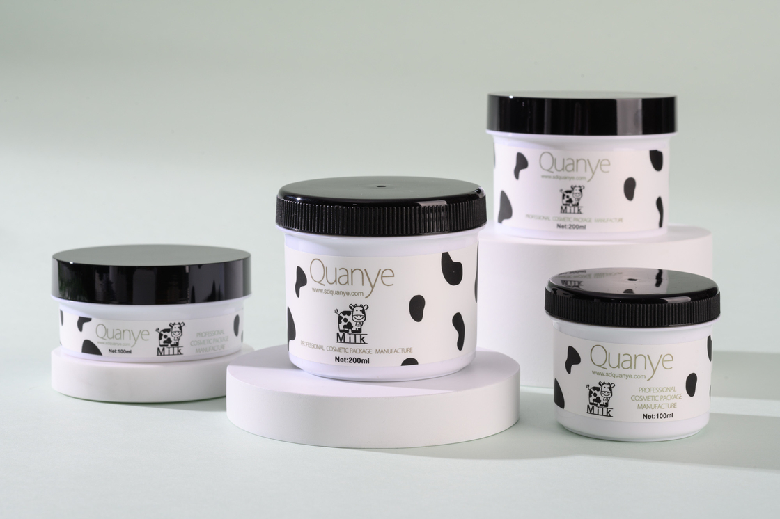 O frasco bonito de creme 100ml 200ml do creme de corpo do bebê etiqueta a impressão com tampão preto